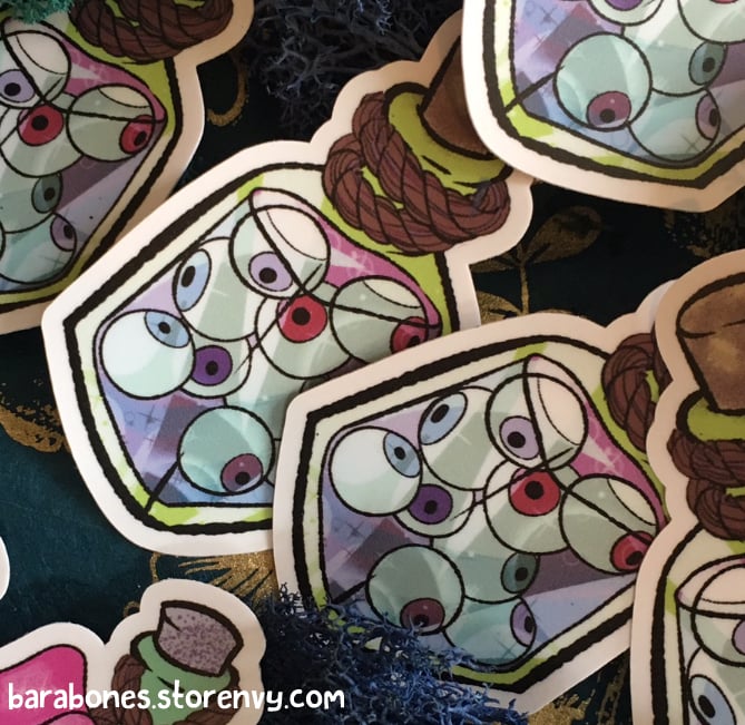 Two different creepy potion stickers for you to enjoy. These magical supplies will be sure to brighten up and spookify any surface you stick them to.